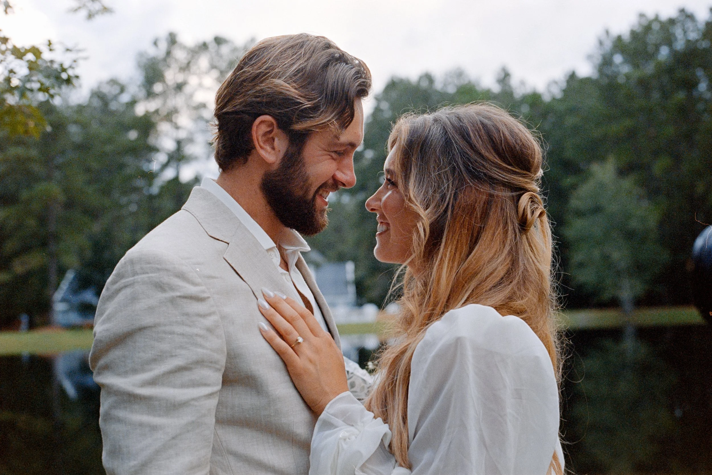 lovers by the lake #weddingdress #weddingflowers #weddinginspo #weddingcake #weddingphotography Madeline Daniel #engagement #wedding #weddinginspiration #weddingrings