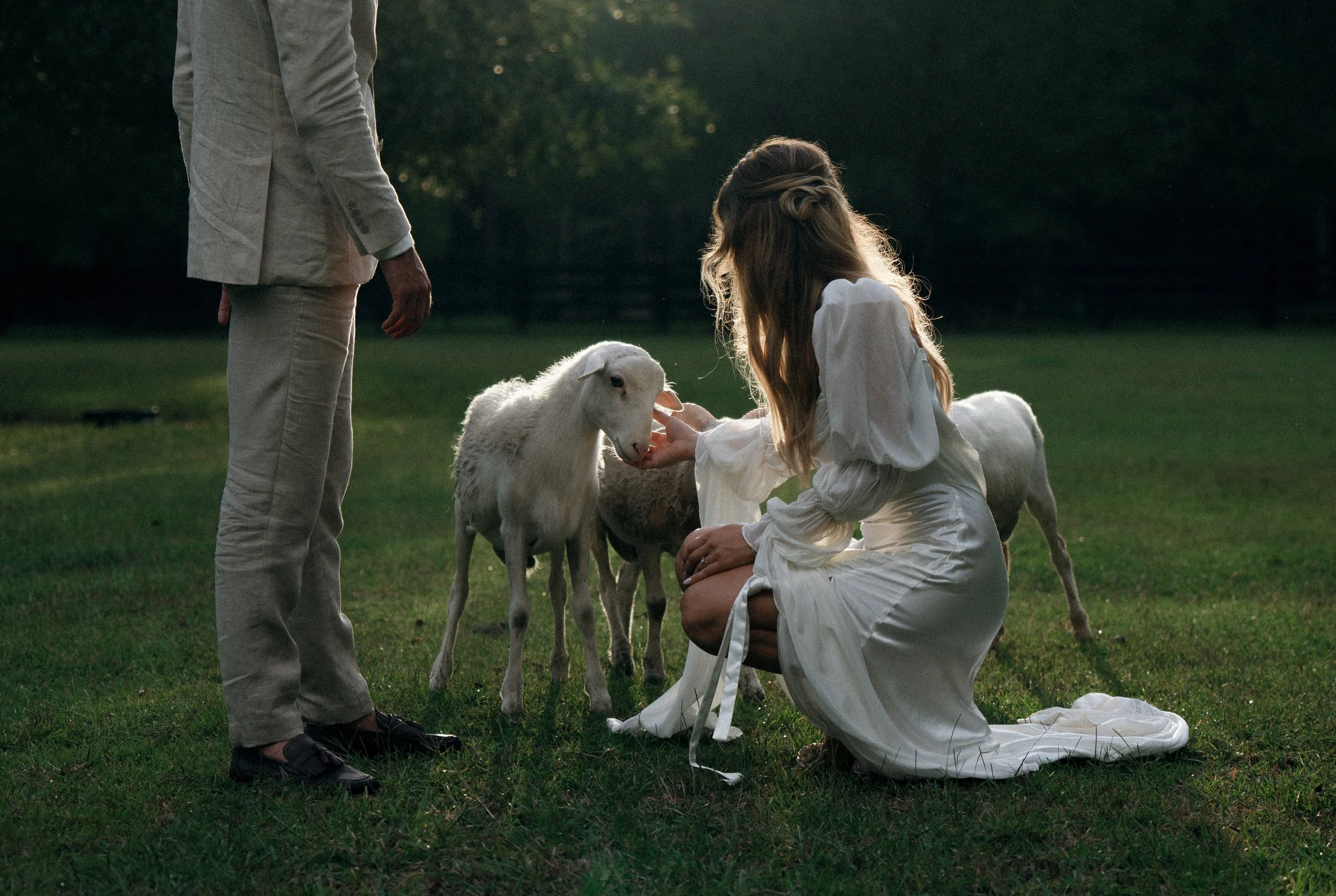 lambs visiting bride #weddingdress #weddingflowers #weddinginspo #weddingcake #weddingphotography Madeline Daniel #engagement #wedding #weddinginspiration